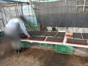 生命力を感じますね。今日はその花の苗のお世話として、パレットの下に引いてあるトレーを