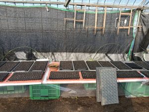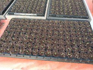 前回、植え付けた種が温室で芽を出していました。