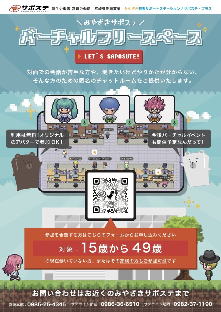 みやざき若者サポートステーション/サポステ・プラスでは、月1回程度、MetaLife上でバーチャルフリースペースを開設することになりました!(無料)